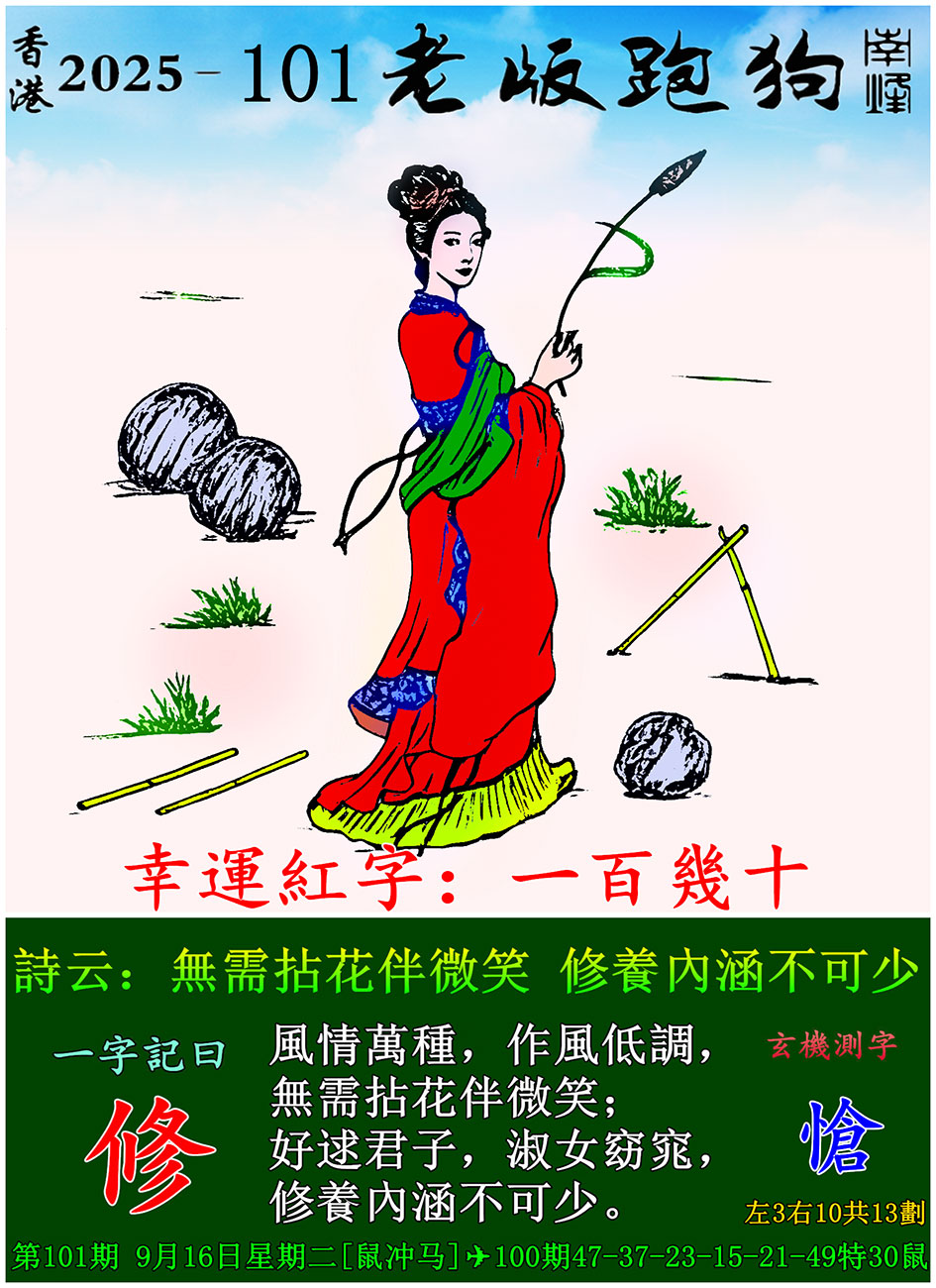 101期老版跑狗一字記之曰:【修】 玄機測字:《愴》
