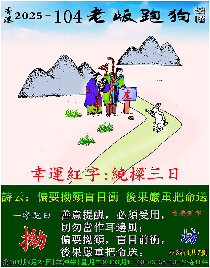 104期老版跑狗一字記之曰:【拗】 玄機測字:《坊》