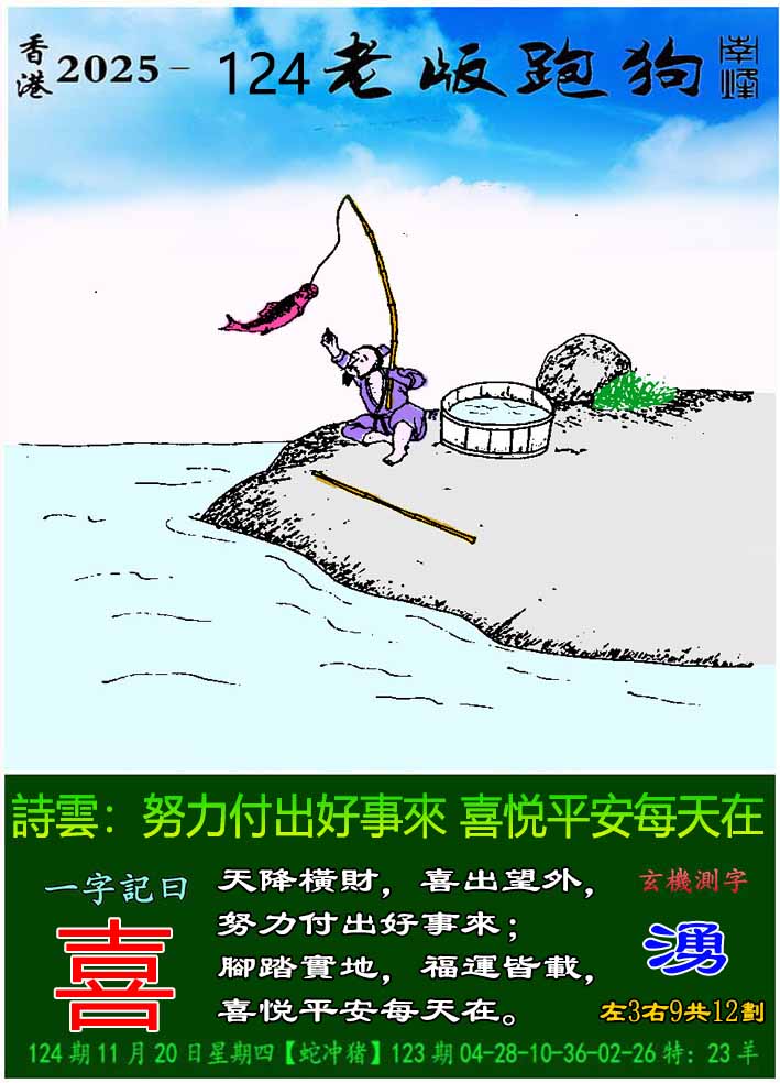 124期老版跑狗一字記之曰:【喜】 玄機測字:《湧》