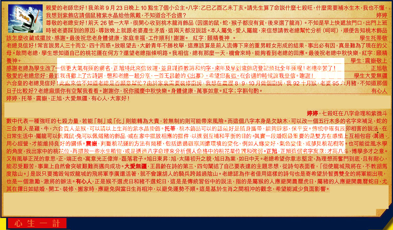 【4】.感謝老總為學生改了一個更大氣有運的網名,正旭特此來信致謝,並且謹遵教誨和約字,來年及早到紫飾店登記預批全年運程!老總辛苦了! 正旭敬