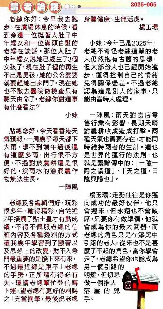 065期:彩民推荐贴信读者论坛