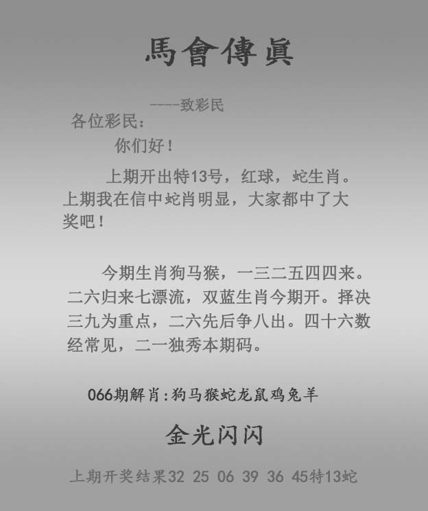 066期:正马会传真