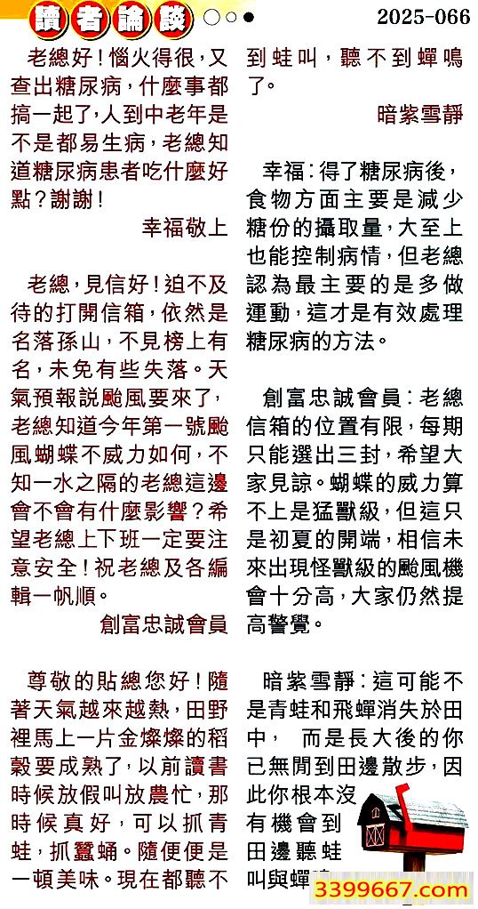 066期:彩民推荐〖貼信讀者論壇〗