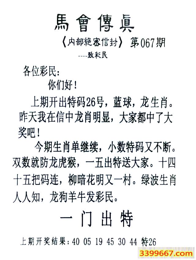 067期:首发推荐:≮馬會傳眞≯→(香港正版)