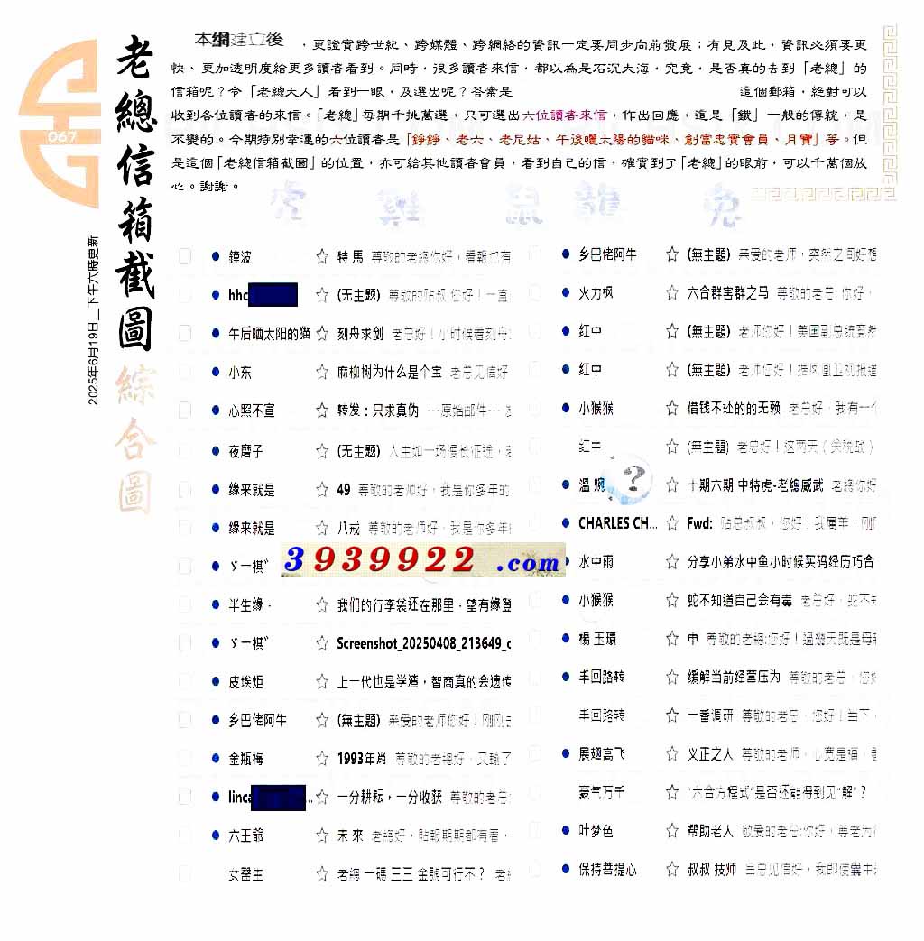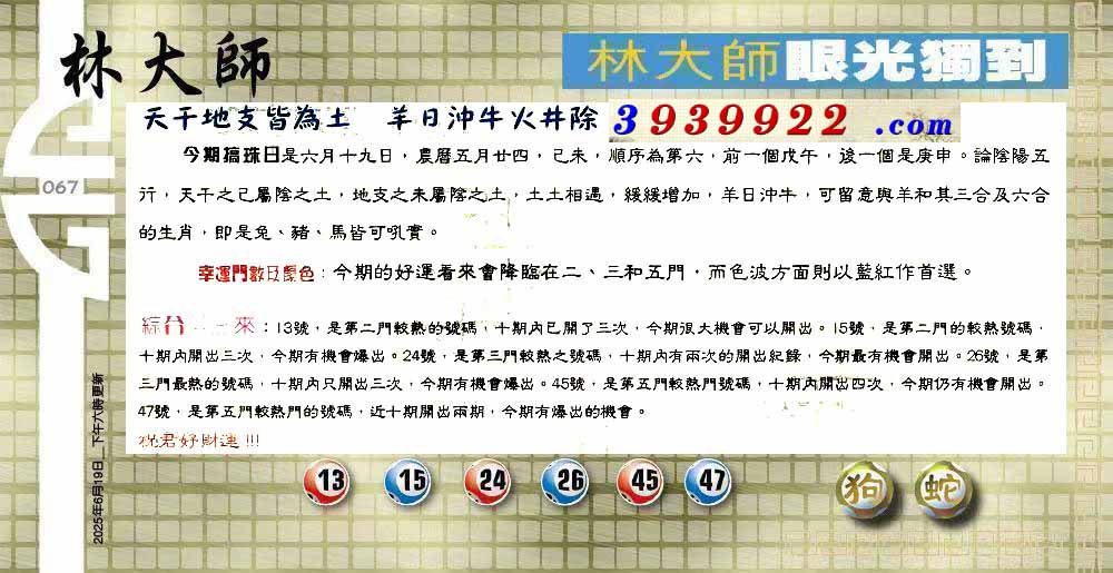 067期:六合皇金句/老总论码/萧公子/林大师/五行夺码/老总信箱截