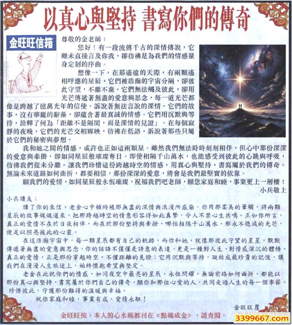 068期:金旺旺信箱彩民推荐→→《以真心與堅持 書寫你們的傳奇》