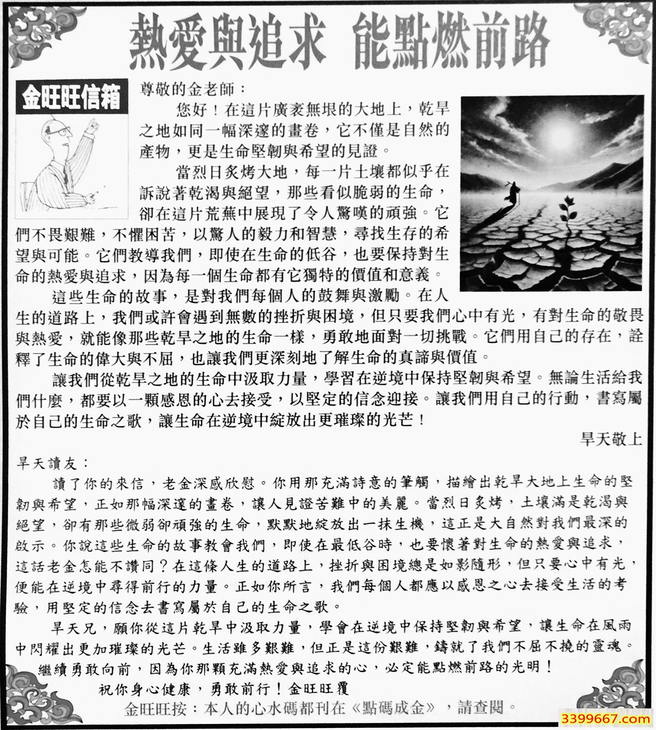 069期:金旺旺信箱彩民推荐→→《熱愛與追求 能點燃前路》