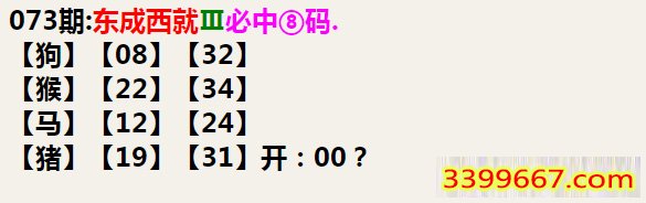 073期:东成西就Ⅲ必中⑧码