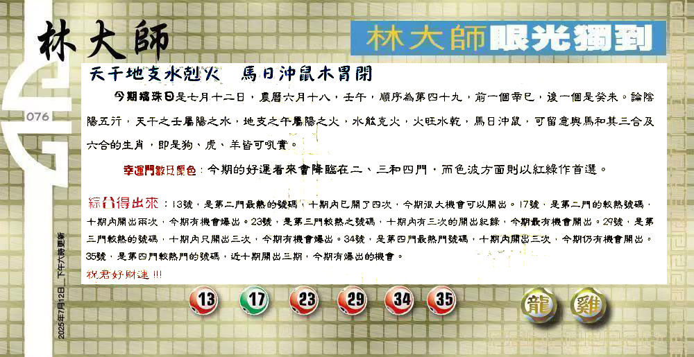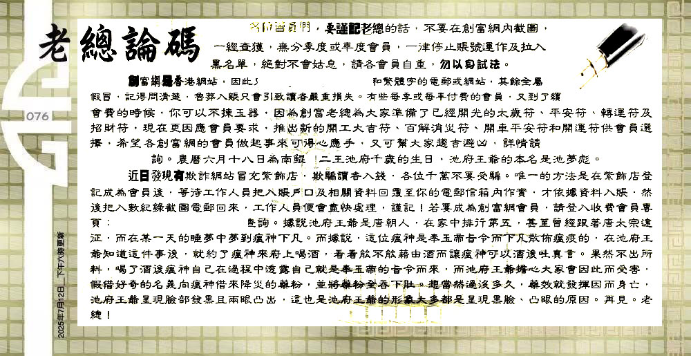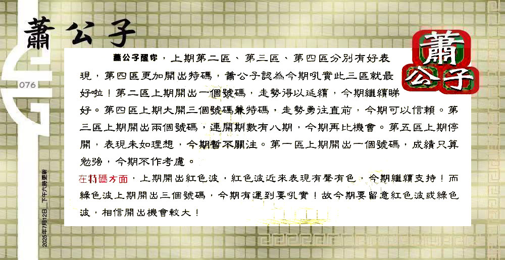 076期:六合皇金句/老总论码/萧公子/林大师/五行夺码/老总信箱截