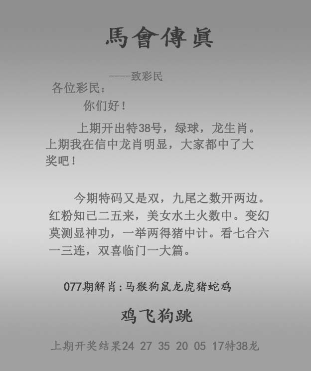 077期:正马会传真