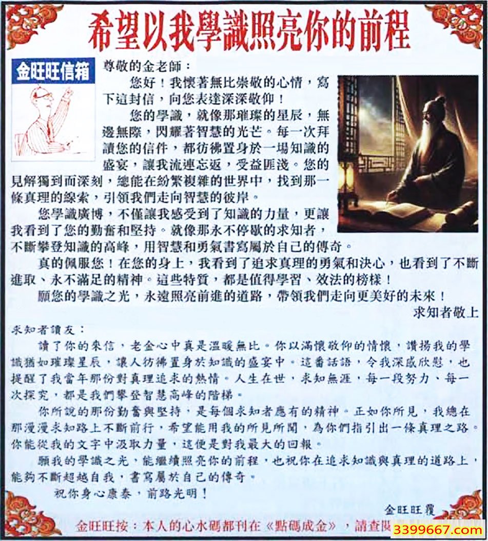 080期:金旺旺信箱彩民推荐→→《希望以我學識照亮你的前程》