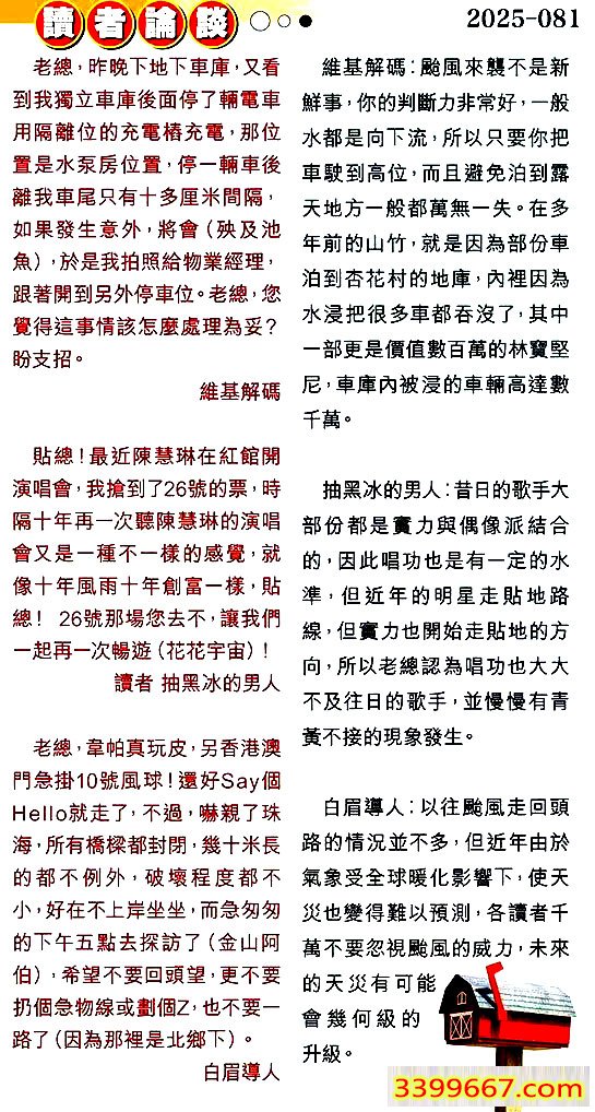 081期:彩民推荐〖貼信讀者論壇〗