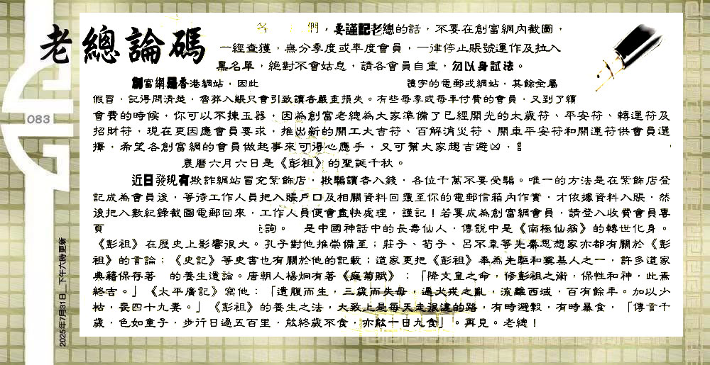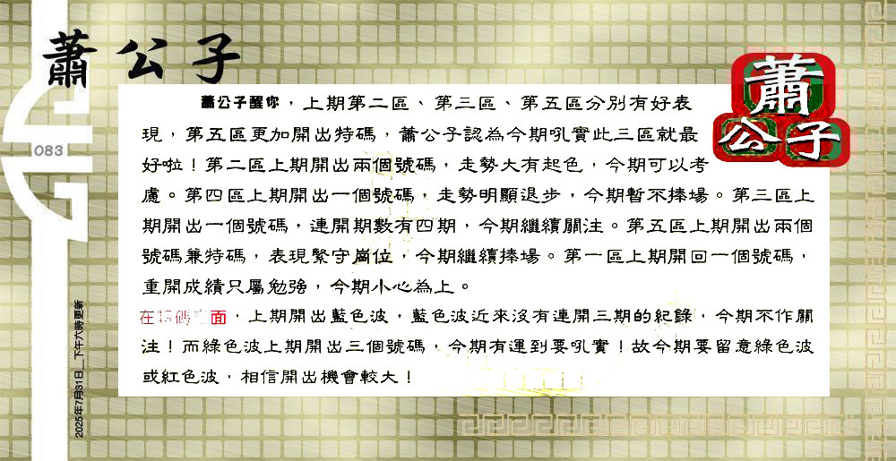 083期:六合皇金句/老总论码/萧公子/林大师/五行夺码/老总信箱截
