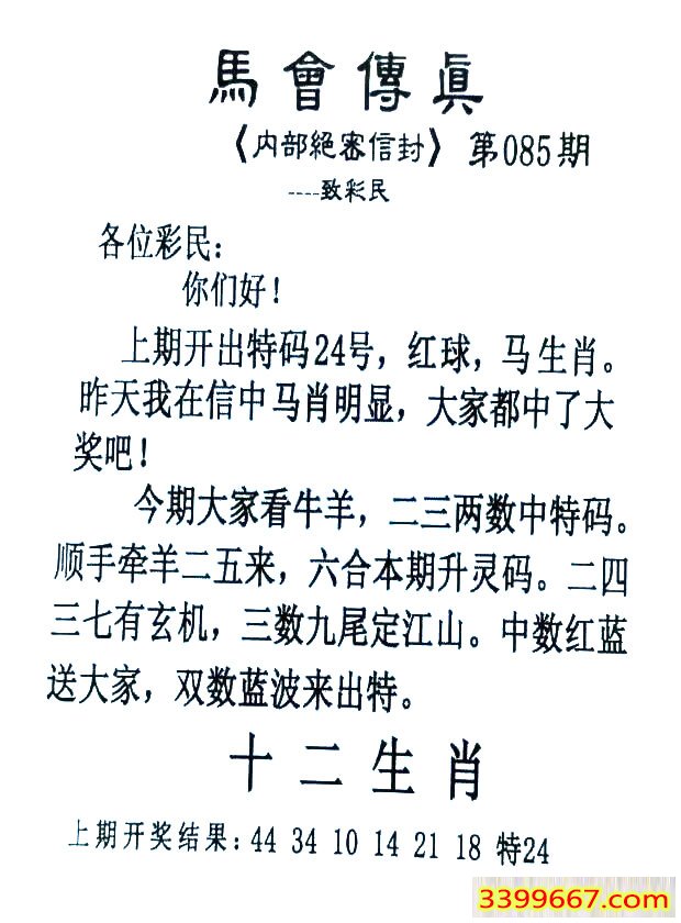 085期:首发推荐:≮馬會傳眞≯→(香港正版)