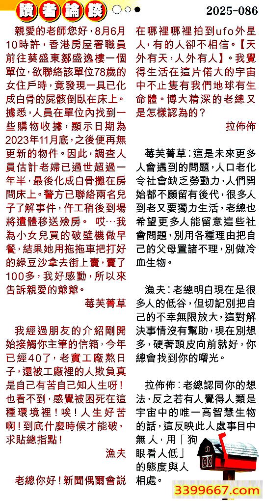 1.親愛的老師您好,8月6月10時許,香港房屋署職員前往葵盛東鄒盛逸樓一個單位,欲聯絡該單位78歲的女住戶時,竟發現一具已化成白骨的屍骸倒臥在床上。據悉,人員在單位內找到些購物收據,顯示日期為2023年11月底,之後便再無更新的物件。因此,調查人員估計老婦已過世超過年半,最後化成白骨攤在房間床上。警方已聯絡兩名兒子了解事件,许工稍後到場將遗體移送殮房。哎...我為小女兒買的破壁機做早餐,結果她用拖拖車把打好的緣豆沙拿去街上賣,賣了100多,我好感動,所以來告訴親愛的爺爺。====莓芙菁草