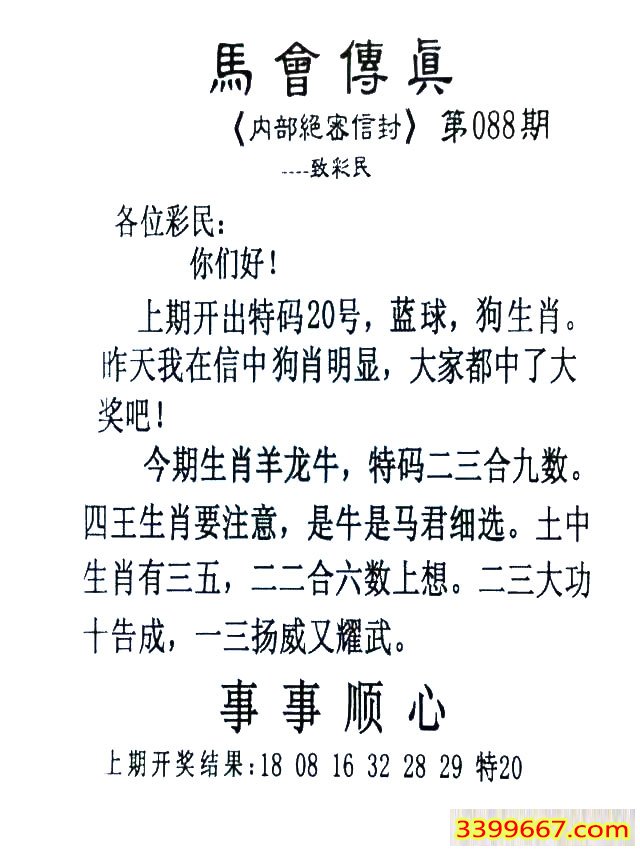 088期:首发推荐:≮馬會傳眞≯→(香港正版)