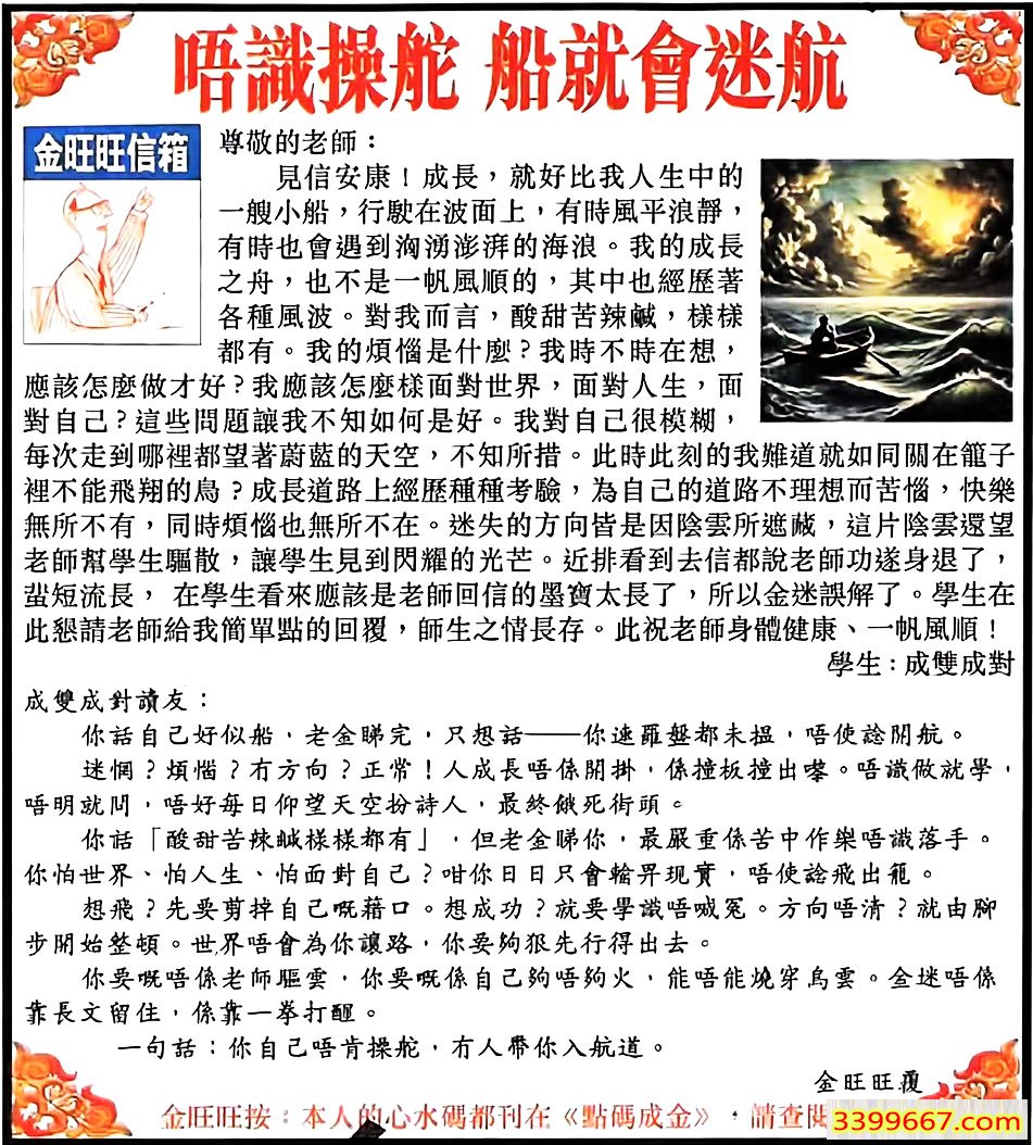 090期:金旺旺信箱彩民推荐→→《唔識操舵 就會迷航》