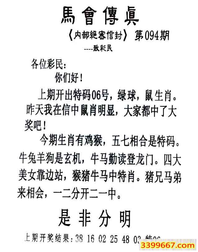 094期:首发推荐:≮馬會傳眞≯→(香港正版)