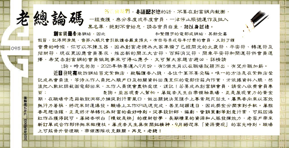 095期:六合皇金句/老总论码/萧公子/林大师/五行夺码/老总信箱截