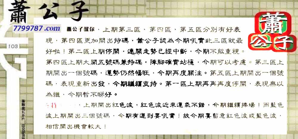 103期:六合皇金句/老总论码/萧公子/林大师/五行夺码/老总信箱截