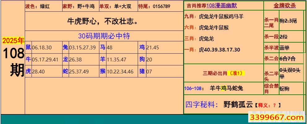 108期:小鱼儿30码期期中+幽默猜测