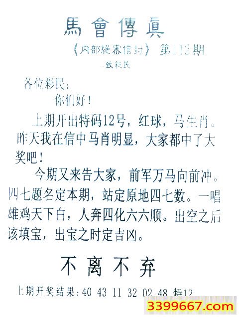 112期:首发推荐:≮馬會傳眞≯→(香港正版)