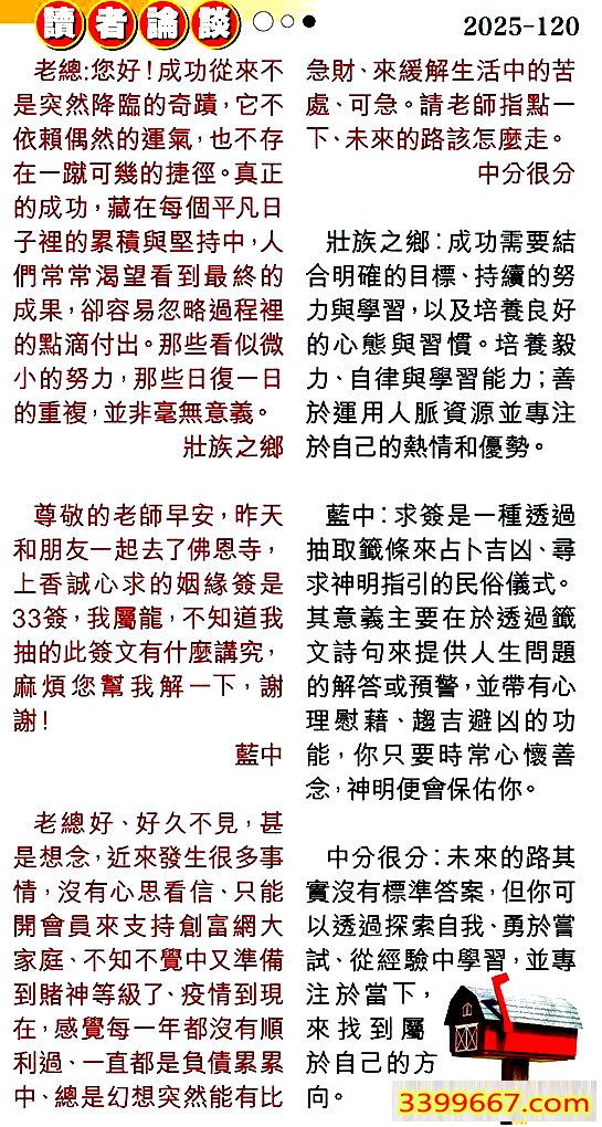 3.老總好、好久不見,甚是想念,近來發生很多事情,沒有心思看信只能開會員來支持創富網大家庭、不知不覺中又準備到賭神等級了、疫情到現在,感覺每一年都沒有順利過、一直都是負債累累中、總是幻想突然能有比急財、來緩解生活中的苦處、可急。請老師指點一下、未來的路該怎麼走。====中分很分