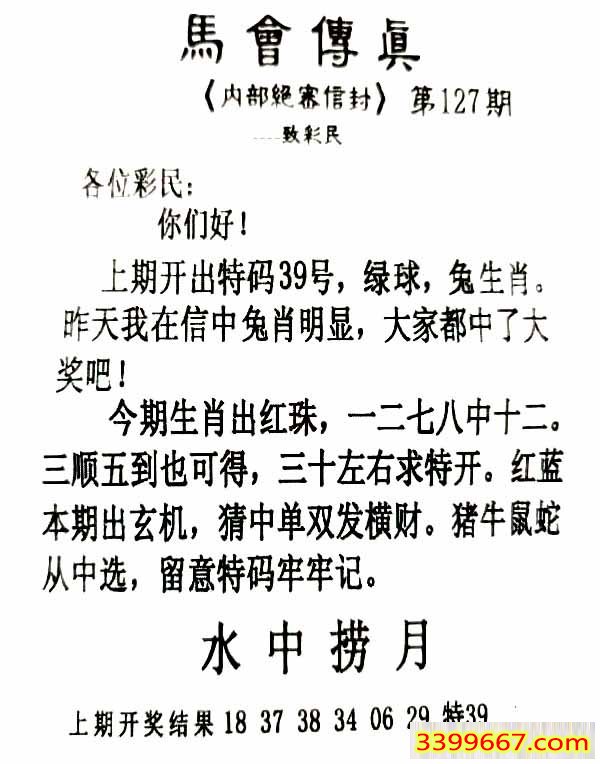 127期:首发推荐:≮馬會傳眞≯→(香港正版)