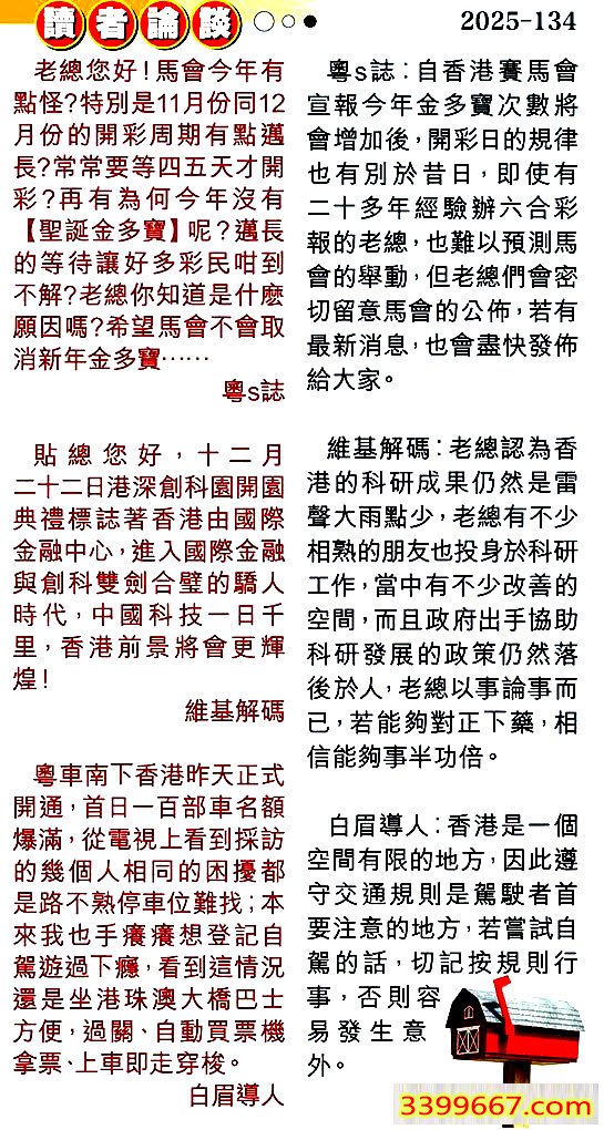 134期:彩民推荐〖貼信讀者論壇〗