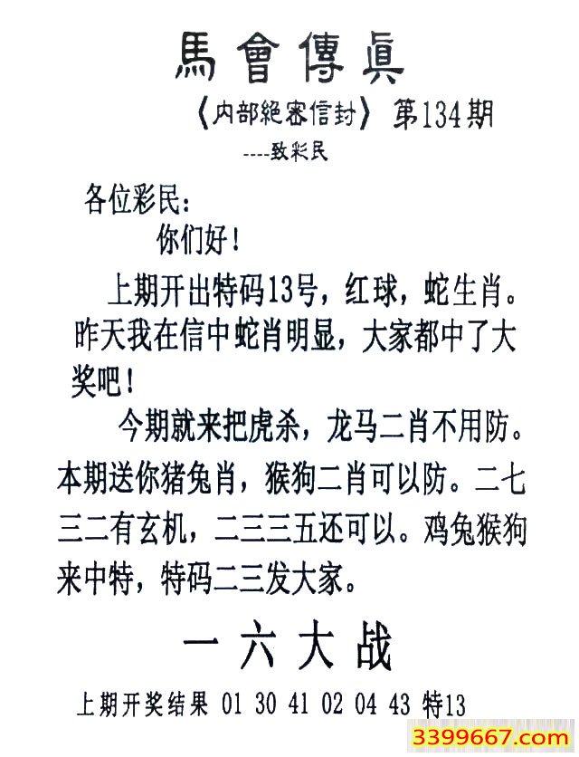134期:首发推荐:≮馬會傳眞≯→(香港正版)
