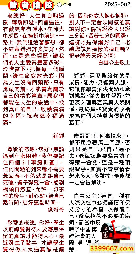 002期:彩民推荐〖貼信讀者論壇〗