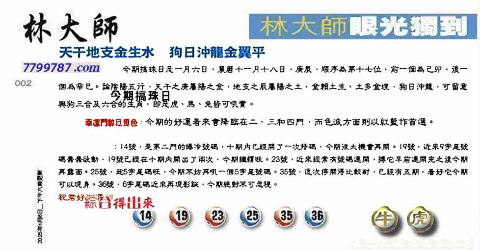 002期:六合皇金句/老总论码/萧公子/林大师/五行夺码/老总信箱截
