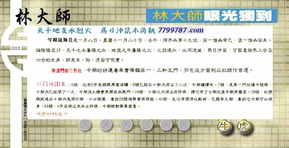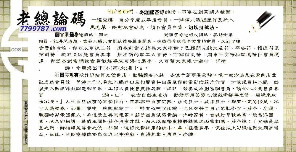003期:六合皇金句/老总论码/萧公子/林大师/五行夺码/老总信箱截