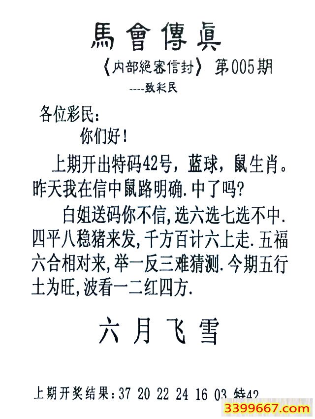 005期:首发推荐:≮馬會傳眞≯→(香港正版)